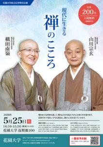 2026年5月25日(月)14:30(開場14:00)より、花園大学にて花園大学創立記念特別対談として、横田南嶺総長と妙心寺派管長山川宗玄老師による対談「現代に生きる禅のこころ」を開催いたします。